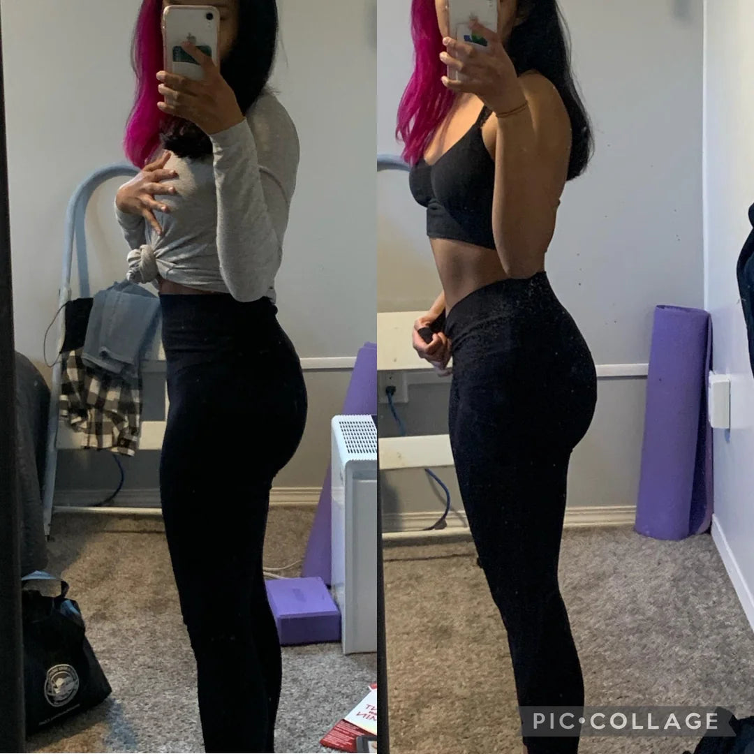 "Flat butt, skinny legs, thick middle i literally looked like an egg. Started this 3 months ago and I finally have proportions that make sense. My waist is smaller and my butt actually exists now."