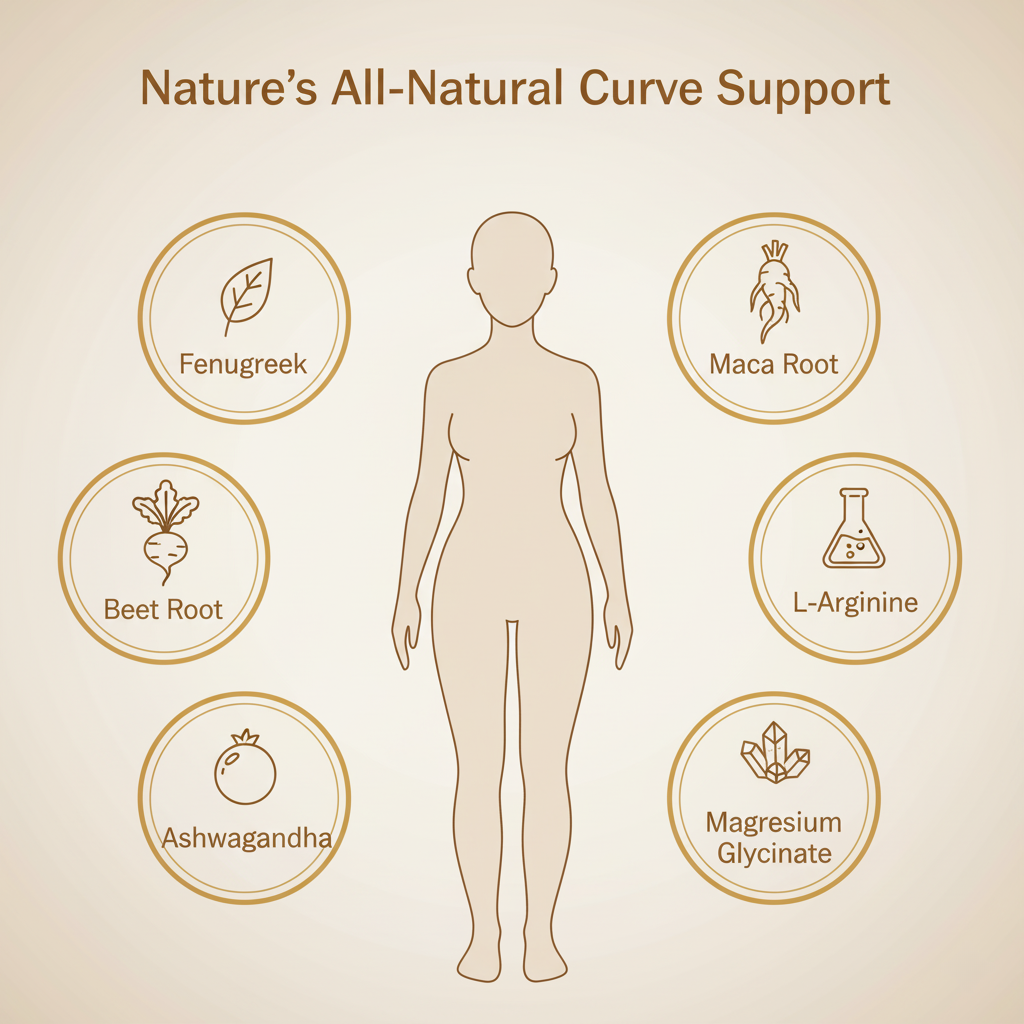 Fenugreek – Supports fat distribution to curves instead of waist. Women notice fuller feminine areas while waist shrinks.