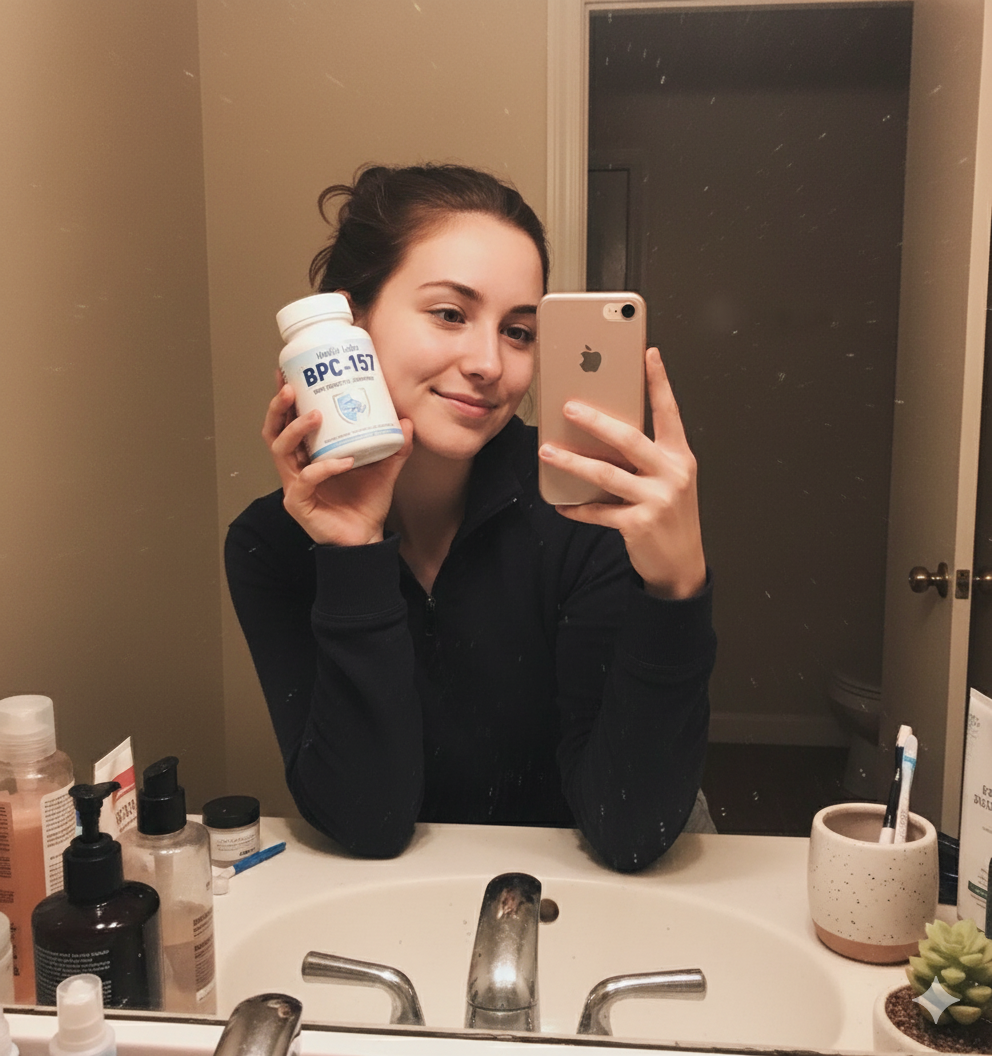 "ibs girlies know the struggle 😭 stomach always cramping, running to the bathroom, can’t wear cute outfits. GlowRepair BPC-157 legit calmed my gut down. i didn’t even notice at first, just realized one day i wasn’t hunched over after dinner."