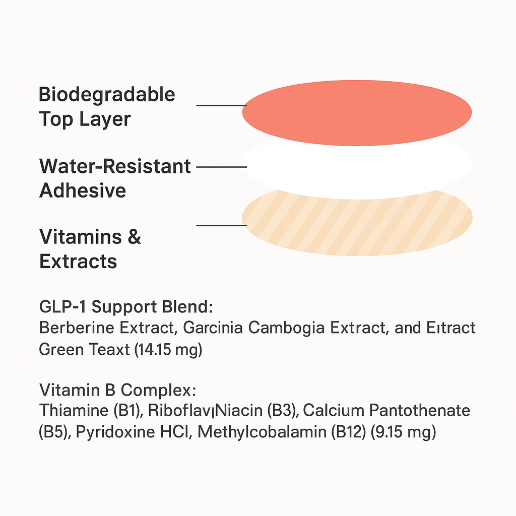 GLP-1 Patches are designed to support your body's natural GLP-1 production, which plays a key role in appetite control and blood sugar balance. The ingredients are absorbed through your skin for steady, consistent delivery.