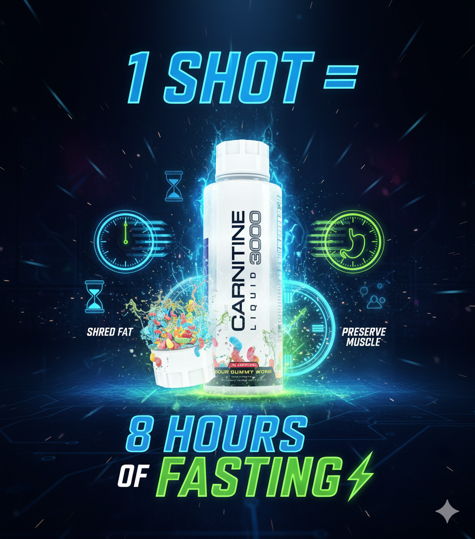 When you fast, your body eventually runs out of glucose and is forced to flip a metabolic switch - pulling energy from stored fat instead of carbs. The problem? That switch usually takes hours of hunger, low energy, and muscle breakdown to kick in. LipoSwitch Fuel bypasses the waiting game. It's triple-carnitine blend acts like a key, shuttling fat directly into your mitochondria - your cells' power plants - so they burn pudge instantly for fuel. Add in niacin and B-vitamins to widen blood vessels and speed nutrient delivery, and you don't just torch fat.. you preserve lean muscle, pump harder, and feel wired with clean energy. One shot is like compressing 8 hours of fasting into seconds - without ever starving, dragging, or losing size.